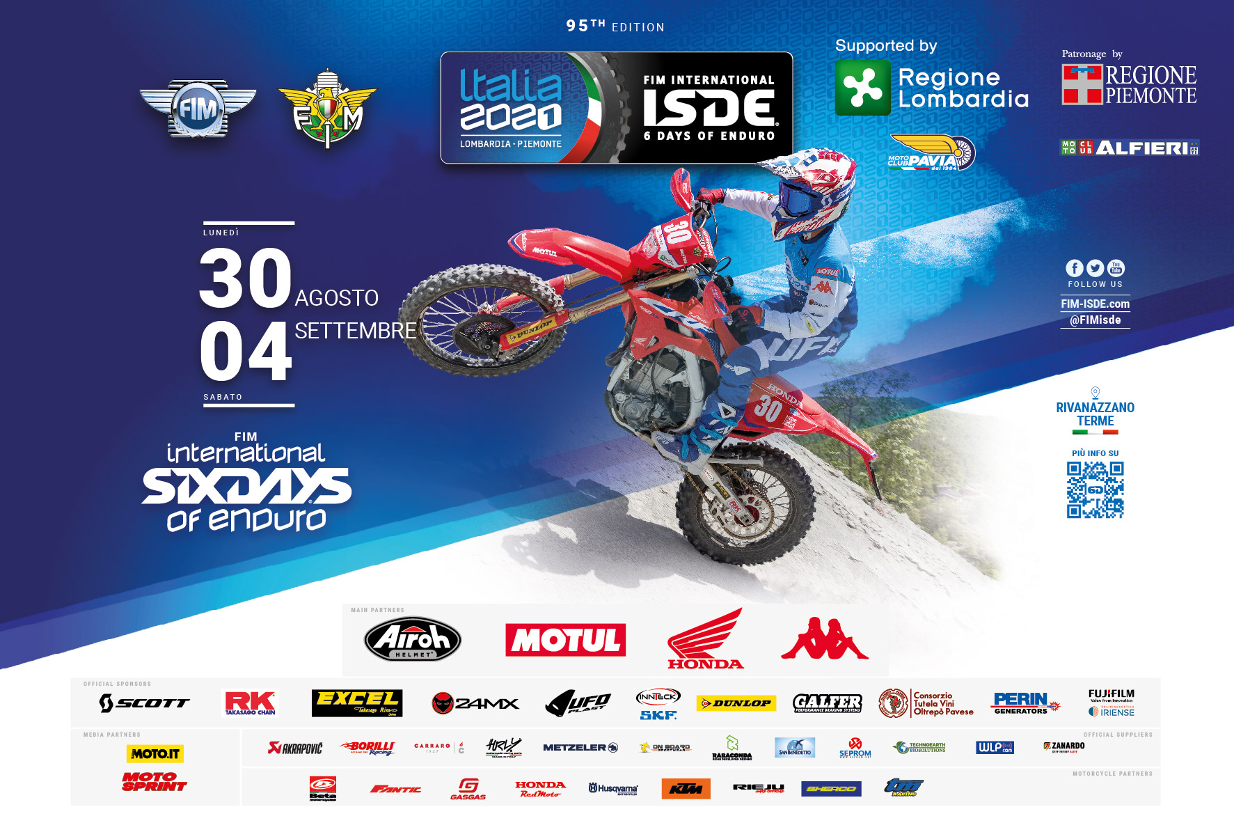 The 95th edition of the FIM International Six Days of Enduro (ISDE) is almost upon us with this year’s event in Italy set to run from Monday 30 August to Saturday 4 September between Lombardy and Piedmont with the event HQ and the paddock located at Voghera-Rivanazzano Terme airport.